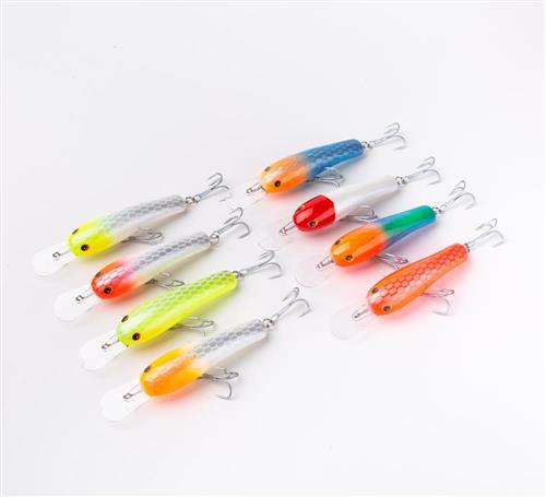 Señuelo en poliuretano de alta densidad. Ideal baitcast y trolling. Se recomienda para Dorados y Surubi. Ojos 3d muy llamativos y pintura holografica con diseño. Anillas y anzuelos reforzados.